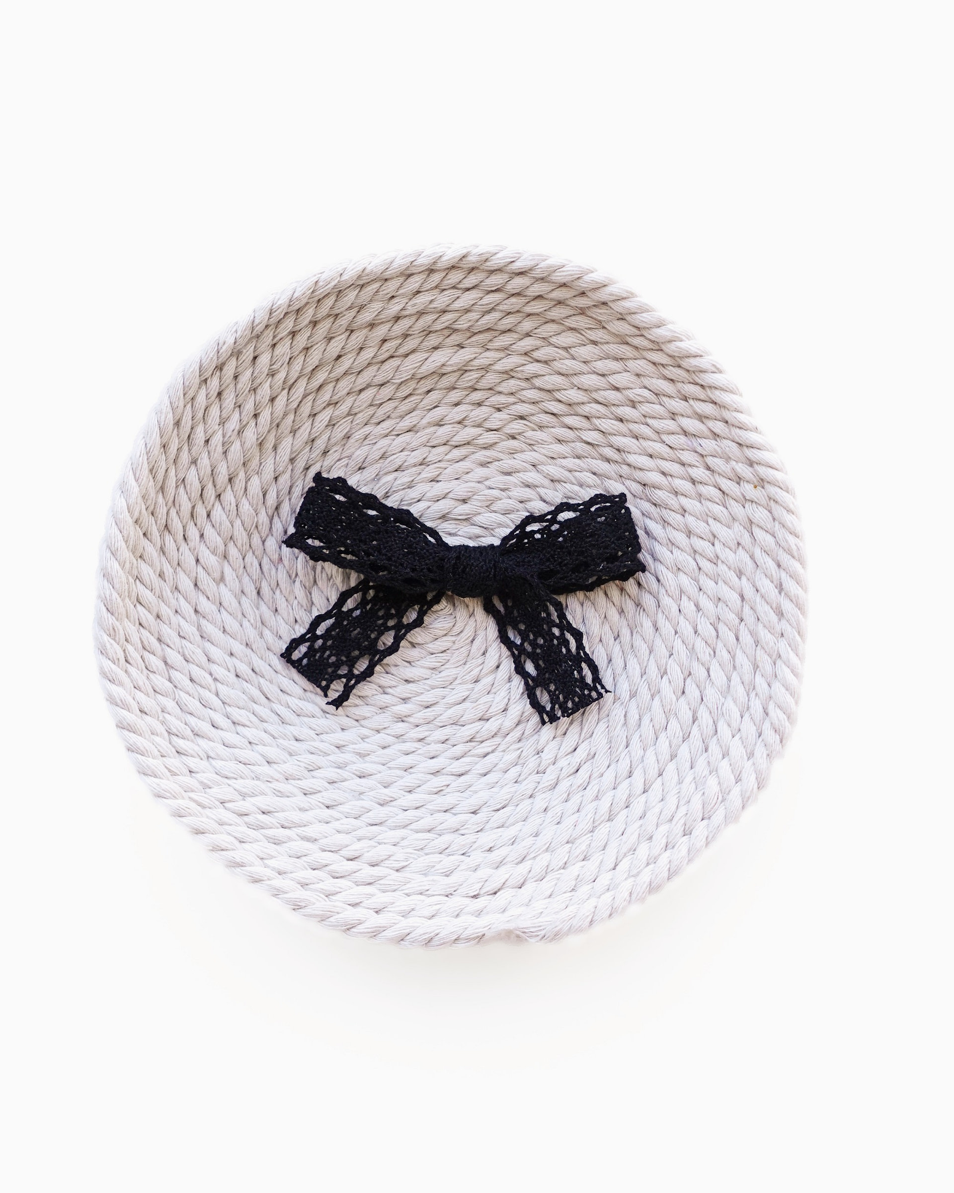 This elegant black lace bow is handmade from delicate openwork lace with a lightweight, airy texture. The classic bow shape creates a timeless and slightly vintage look that adds charm to any outfit.